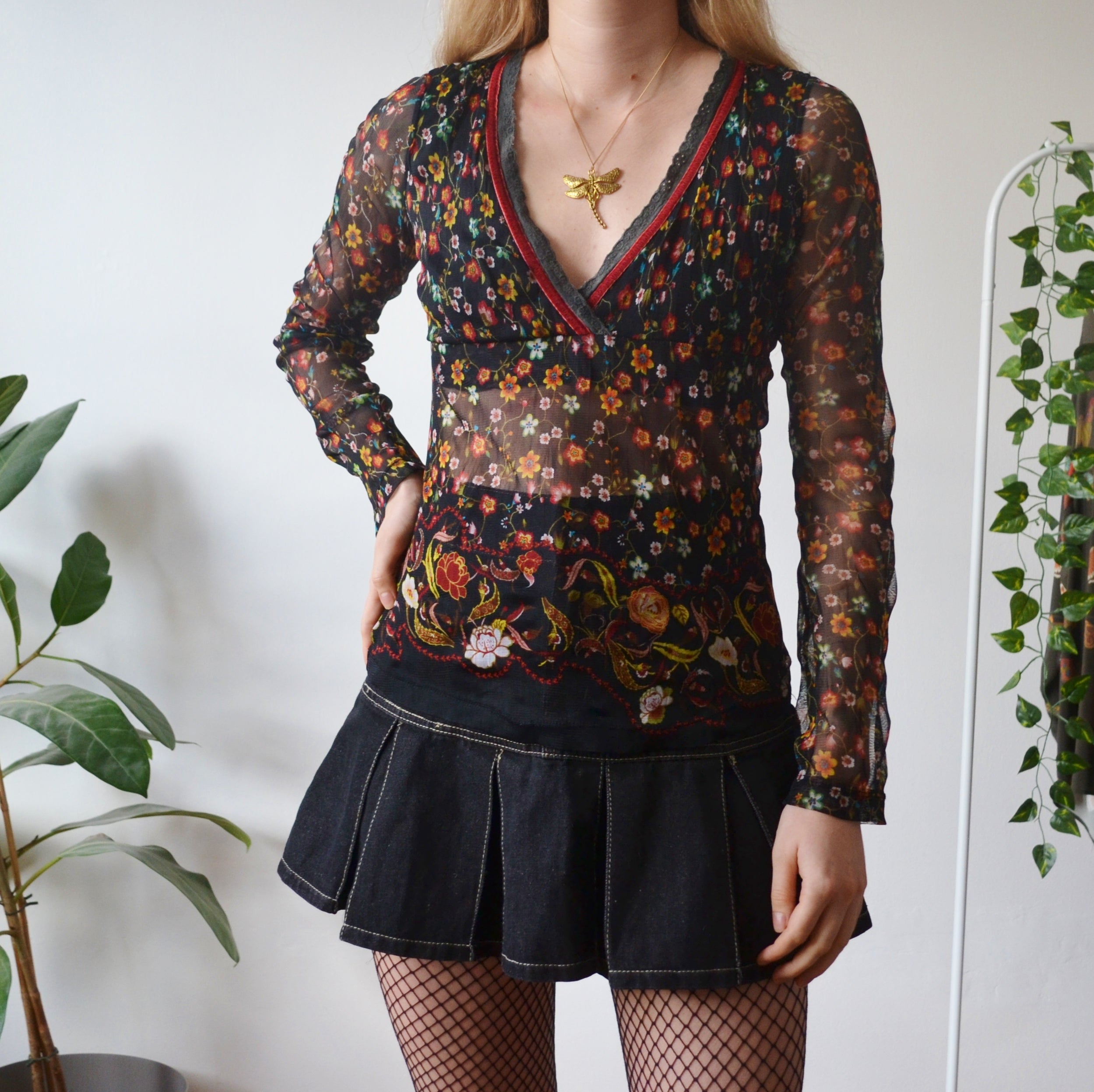 Y2k sheer floral top