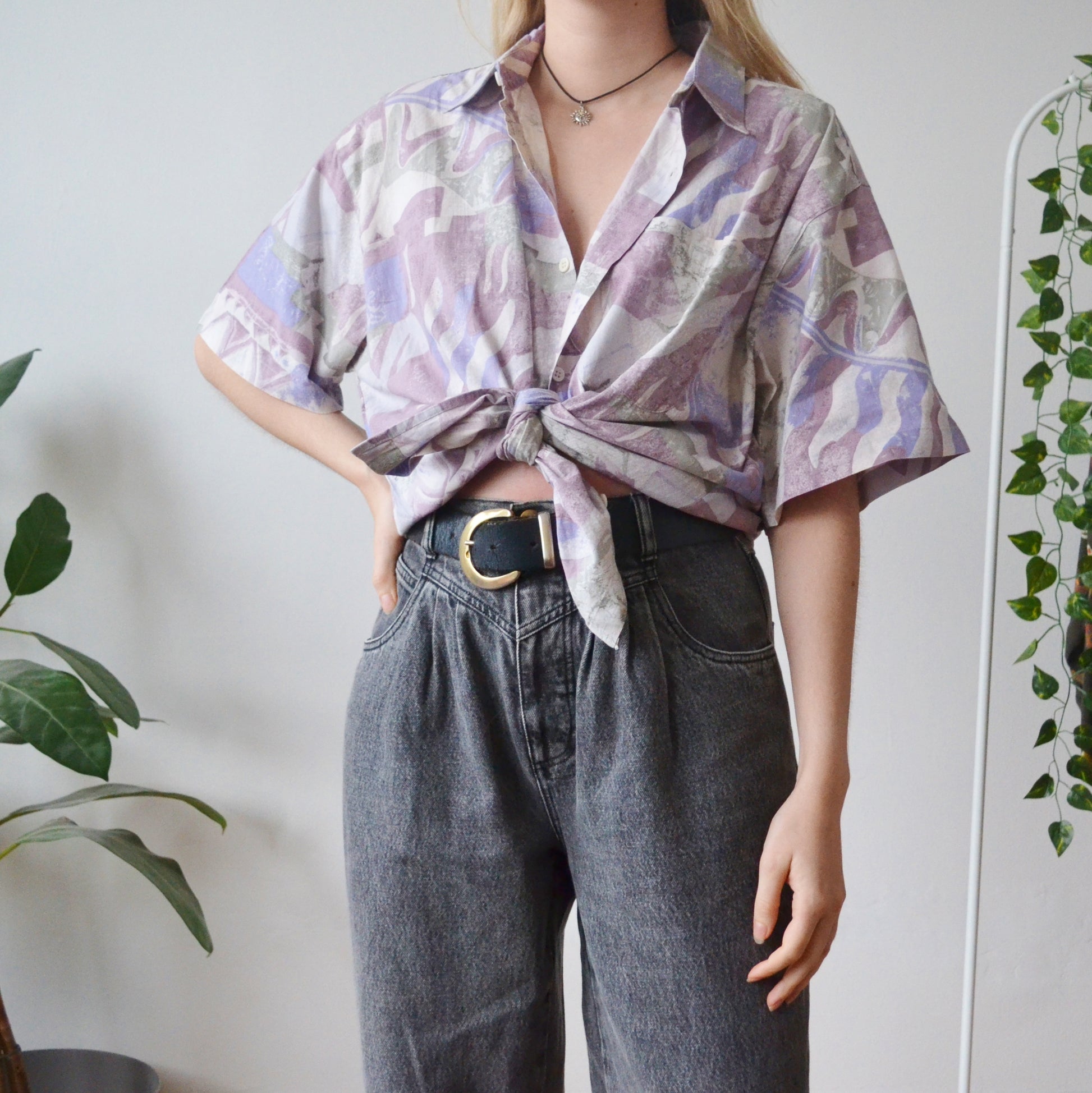Vintage 90s button up pastel short sleeve shirt