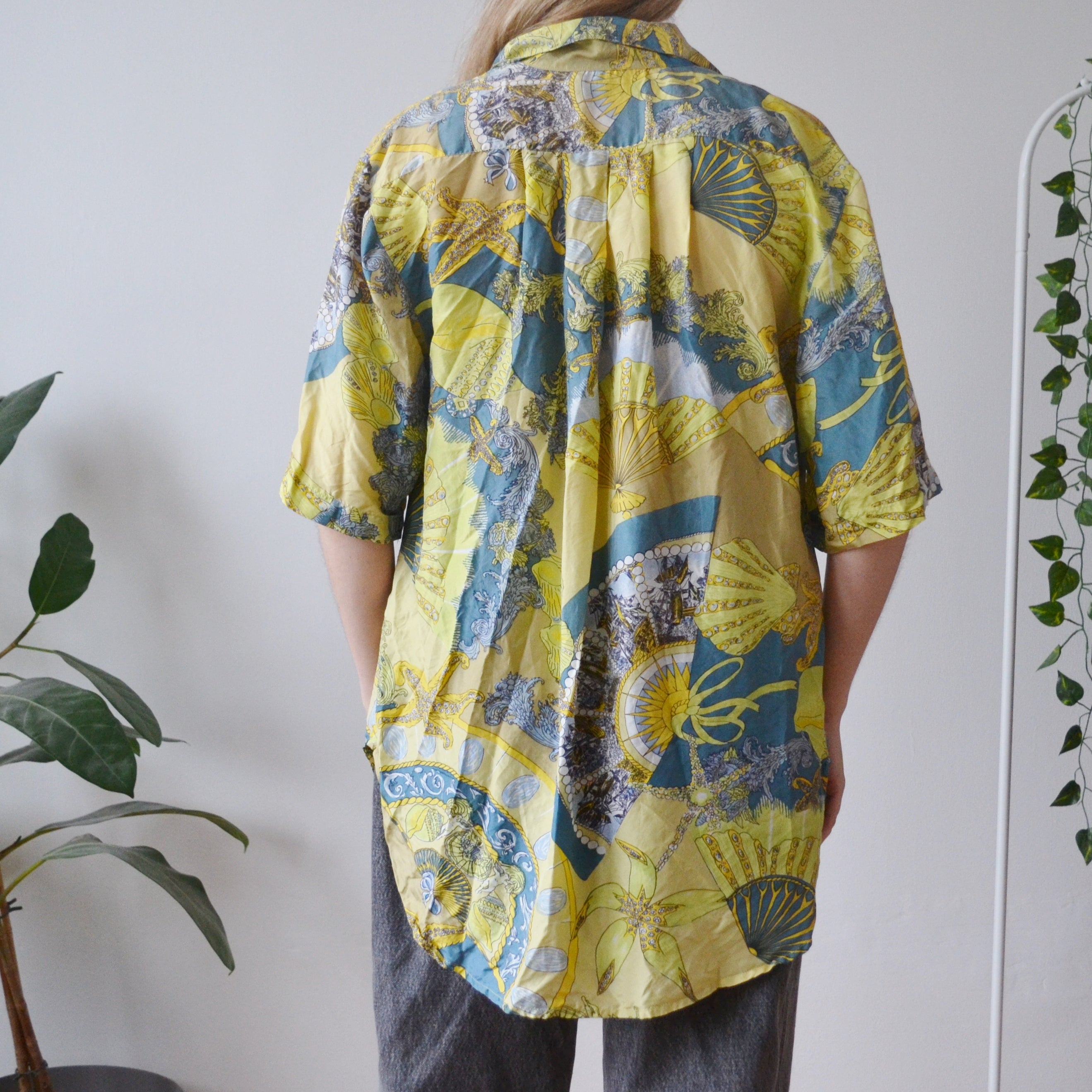 Vintage nautical print button up 90s shirt